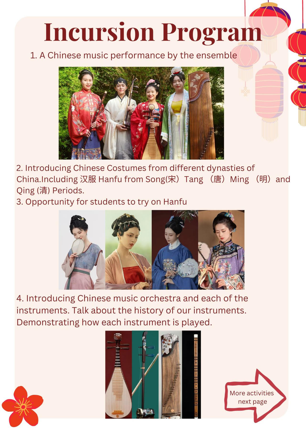 Discover the beauty of Chinese music through engaging ensemble and solo demonstrations.